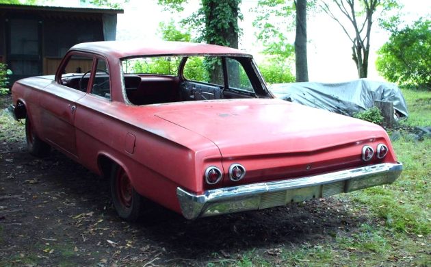 The transmission is said to be a manual, which may be a “3-on-the-tree”, staying with the Biscayne’s low-buck image. The project comes with a title in the seller’s name, so we’re guessing he/she has had it a while resting in the backyard. Would you go the drag car direction as the seller suggests or restore the Chevy to its original no-frills state?