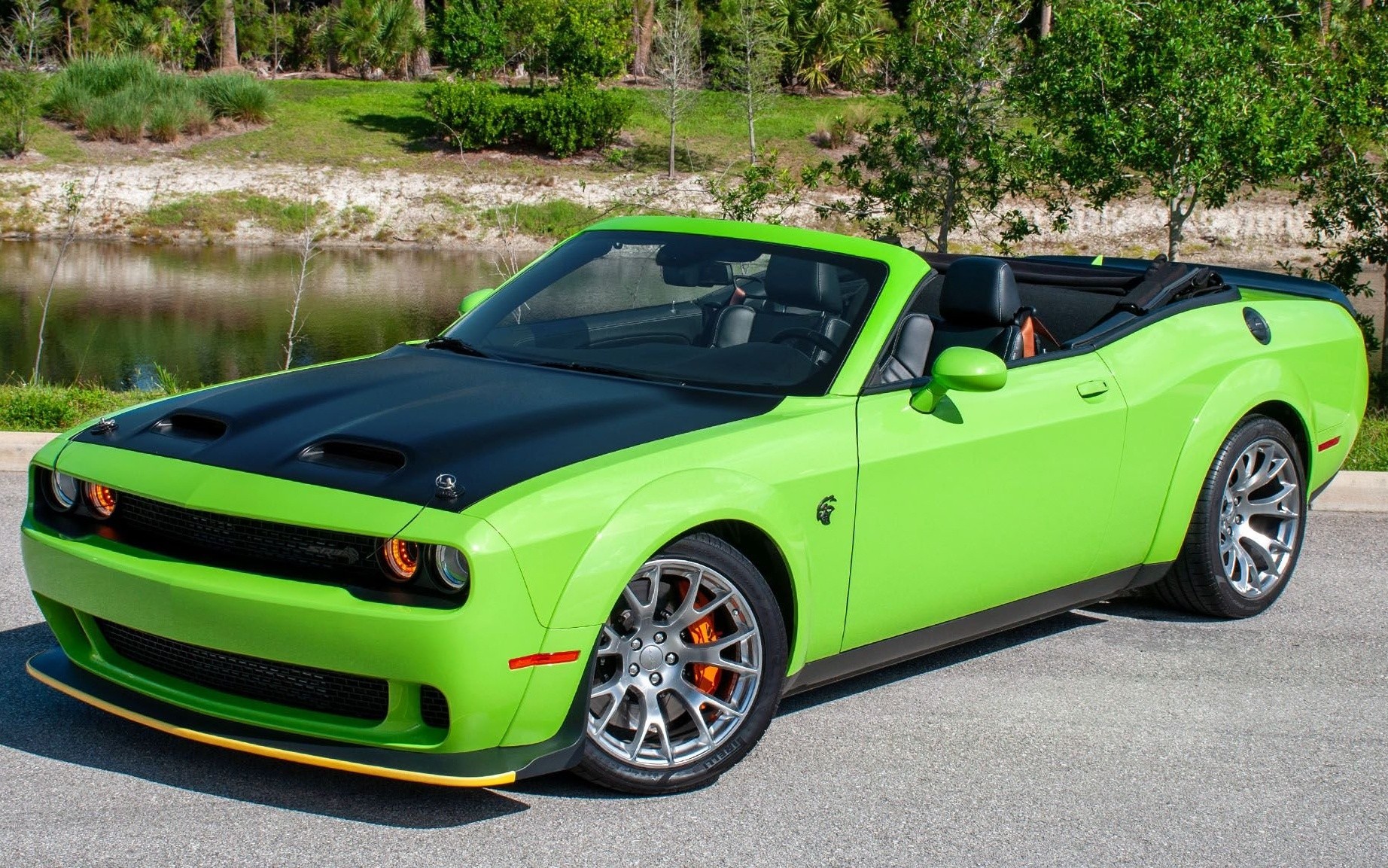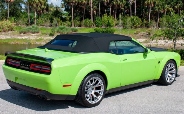 Dodge hasn’t offered a factory-built Challenger convertible since the 1971 model, but a third-party called Drop Top Customs has been converting a few of the recent examples into ragtops, with the workmanship appearing to be of very high quality. While this transformation would look appealing on just about any Challenger, it doesn’t hurt when the body is painted Sublime green, one of the vintage High Impact colors that Dodge resurrected. The canvas seems to cover the top nicely in the up position, and also has a snug fit when retracted.