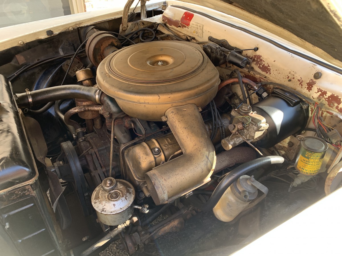 Mechanically, the car is pretty sound as it starts and runs well. A tune-up was recently done and the gas tank cleaned. The drive belts are new as is the starter solenoid, battery, and fuel sending unit. The transmission should be serviced before going through the gears while in motion. The brakes are new, too, including hoses and fluid. The shocks could stand replacing and the front end likely needs servicing.