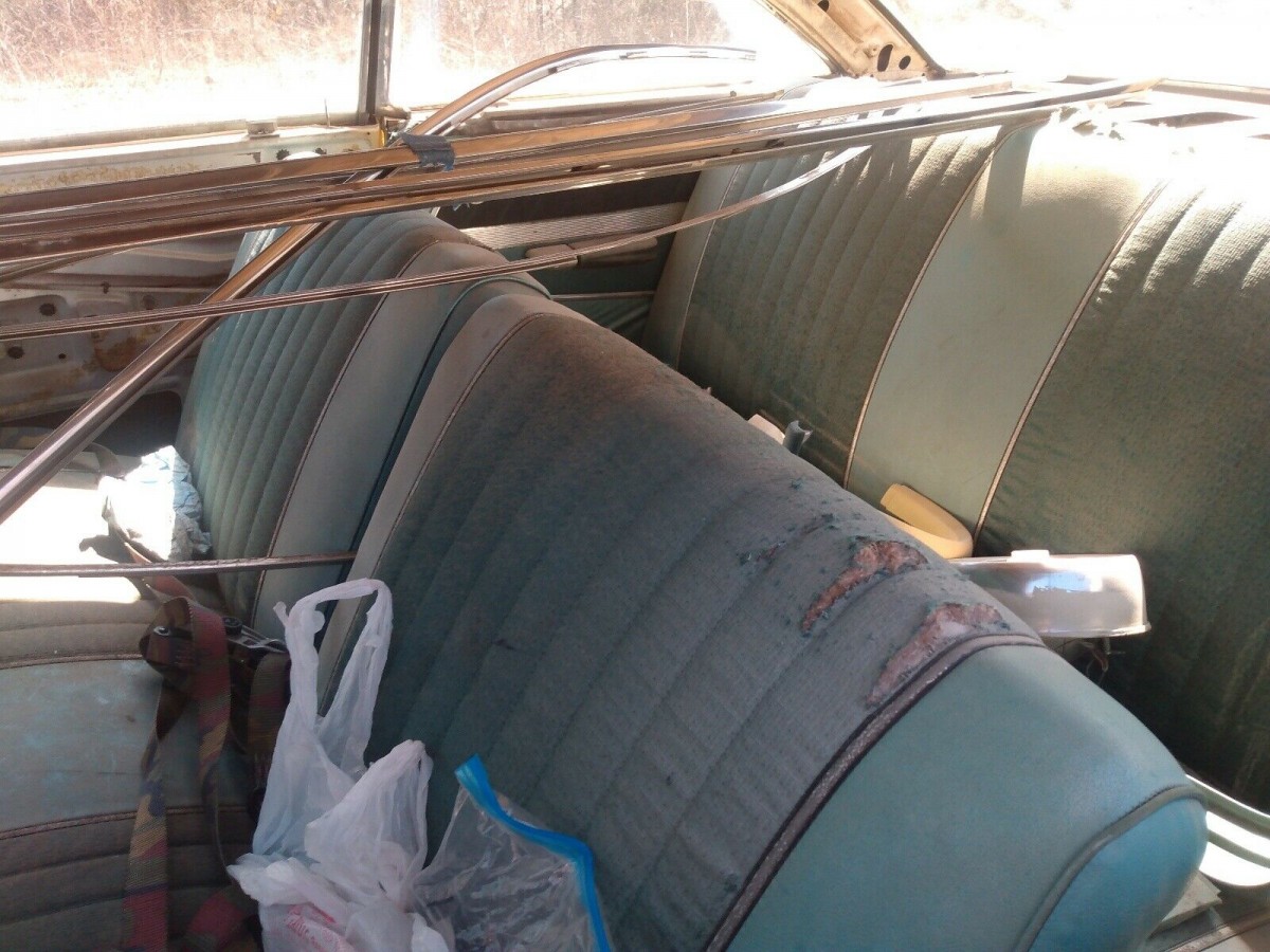 The interior looks as though it could to need a complete makeover, but all we can tell is that the seat covers are distressed. A lot of parts, presumably from this car, fill up much of the sitting space. The seller says it has a 351 V8, but that engine didn’t come along for several more years, so what motor was there to begin with and where is the 351 now? The same question applies to the automatic transmission this car is said to have. This car had air conditioning at some point given the under-dash hardware, but what about the pieces that would go under the hood?