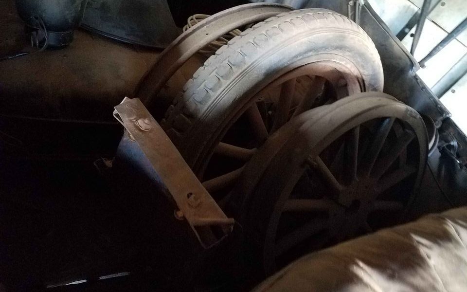 Since it has been sitting for 4o years, it’s a non-runner and no mention is made regarding its powertrain, which should be a 32 HP, 180 CI, in-line four-cylinder engine. There is, unfortunately, no description or images included that are remotely related to potential operational motivation. There is no reference made of the interior either, other than to state, “Spare fender in the backseat” and “extra wood wheels” which also look like they are keeping the fender company.
