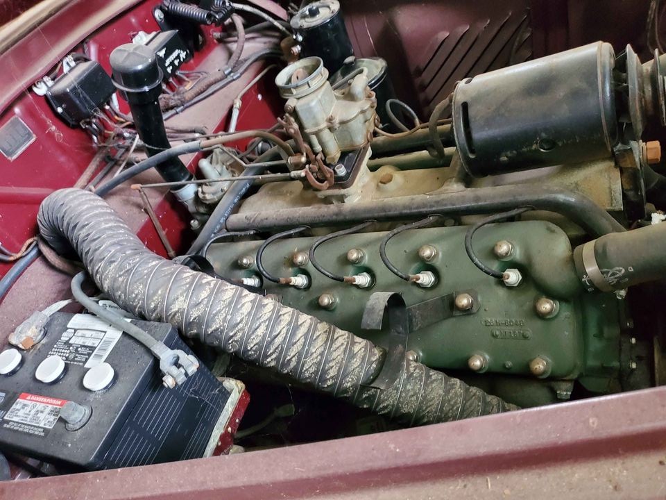 And only 5 wires. But the engine is the right color, as I remember them, and the 6th plug on this side is back by the firewall, the other 6 on the other side. But, good catch, the 6th plug would be hidden from this view, but the wire should be there. Maybe that cylinder gave up the ghost, there was an issue with those rear cylinders back when the engine was a new design, which supposedly was remedied by 1946, but maybe this has the problem and it ran just fine on 11, or 10, and so a disconnected spark plug. This is an enormous car by contemporary car standards, but not compared to a Suburban or Expedition.