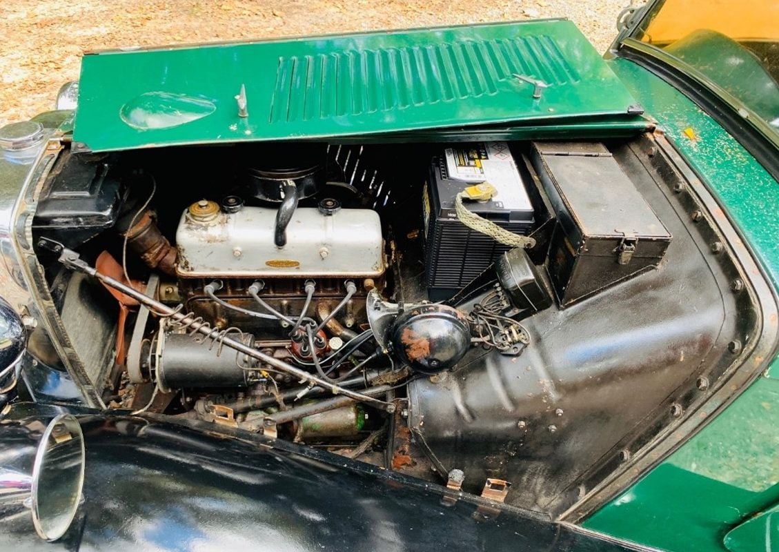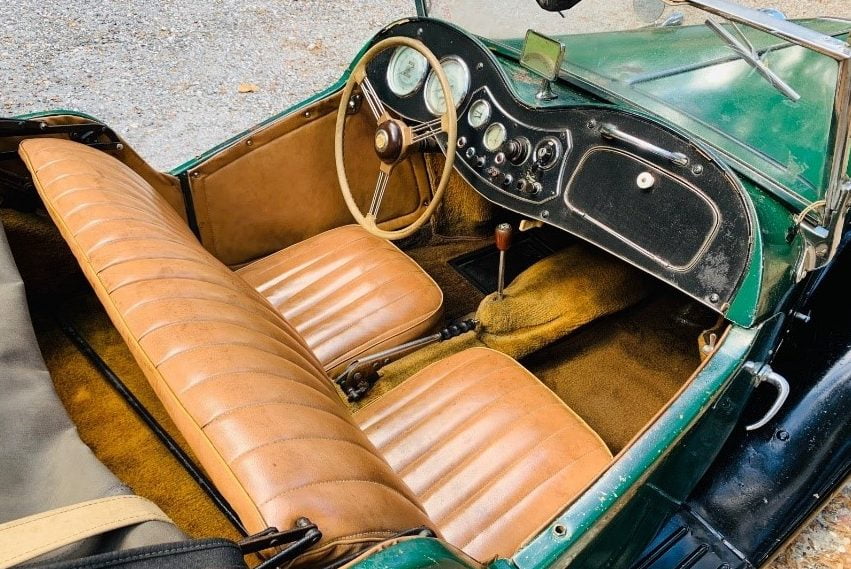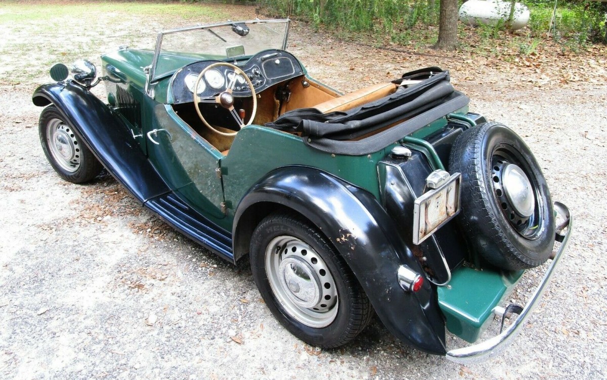 The engine room is actually quite tidy for a lady stored for most of 67 years. The odometer reads 16,217 miles. This 1953 MG is equipped with a 1,250 cc 54 hp in-line four-cylinder engine capable of a top speed of about 80 mph. You can tell your Mom or significant other that this car is so safe it takes 20.6 seconds to get from 0 to 60 mph, and its quarter-mile drag track time is just short of one week. Man, a ‘53 MG in British Racing Green and black is just a curvy, carnal, alluring, evil temptress that’s not going to beat a Maserati—or maybe even an electric bicycle—but sometimes the slow caress is what steals the heart. OK, Mr. Jimmy, let’s go have a soda…