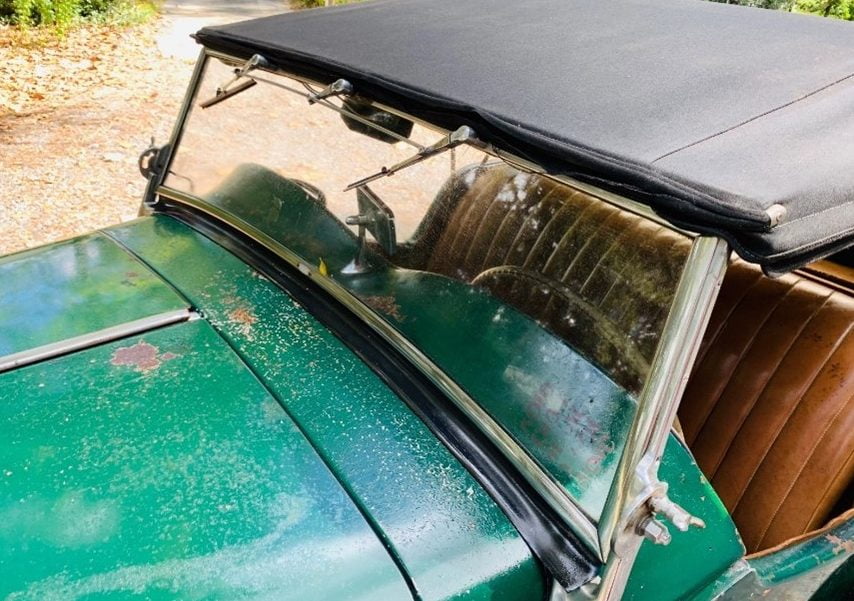 There’s visible wear on the black wood dash, and the non-original carpet seems ill-fitting and needs replacement. The seats are in decent shape. The car comes with a black rag top and the seller does have the side curtains to close in the cabin from the elements. There is even an owner’s manual in the glovebox. I do have that English walnut tree I took down and have been drying in the barn loft for a year…