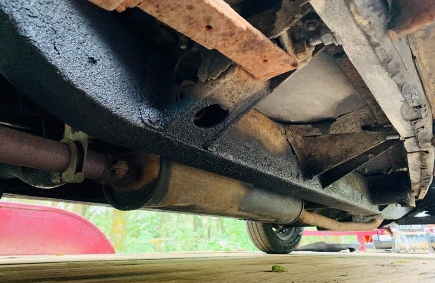 A few thoughts: the badge reading Woodhouse is for the Cologne distributor, so this car was probably brought back to thje States by a GI. The welded frame repairs suggest a pretty major crash in the past. The body support bracket rust is surprising; usually these cars don’t rust out there. The various cracks in the finish suggest significant improper body repair, so I would expect to find a lot more wrong under the skin, than meets the eye.