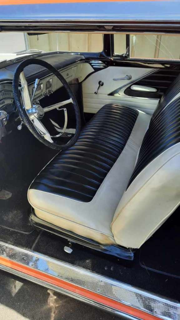 FROM 5/24/2021 – If you ever wanted to own, cruise, and show a colorful, cool car from the 1950s, this could be your ticket. Let’s check all the boxes: Attractive styling. A great 50s two-tone color (Persimmon and Classic White). A color-matching continental kit. Lots of gleaming chrome. Lake pipes. And even color-coordinated fuzzy dice hanging down from the rearview mirror. This fab ’56 is located in Stony Point, New York for an asking price of $25,000 or best offer. You can contact the seller here on Barn Finds Classifieds for more details.