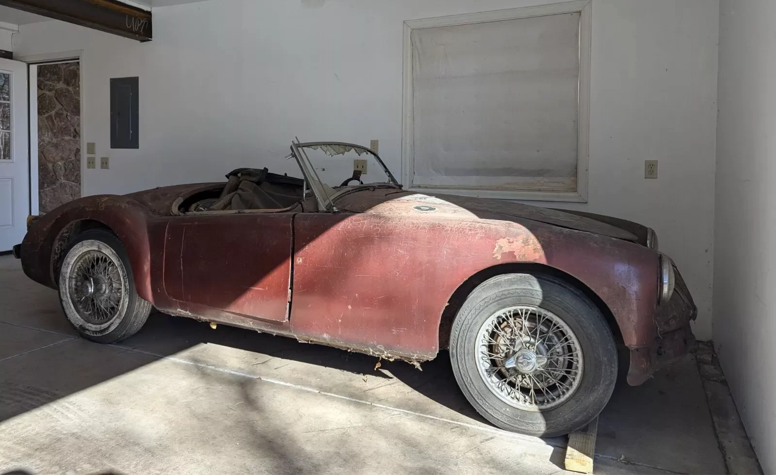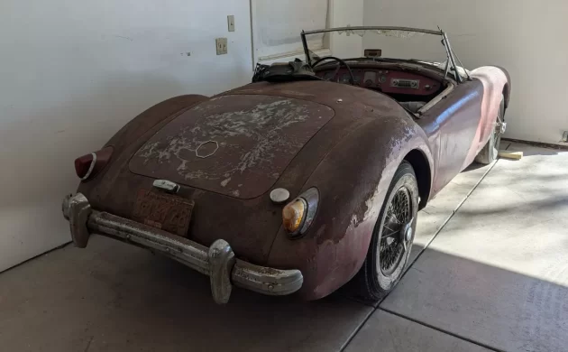 Often, when one finds an old car that is in deleterious condition, its surroundings will match said vehicle’s state. In the case of this 1956 MG “A”, its surroundings look more like a typical suburban garage and not the typical “barn find” venue. The seller states that he’s owned this “A” for twenty years and adds, “I had planned to restore this car, but I have more projects than time.” OK, let’s see what’s up with this car that he suggests is “a great candidate for restoration.” Colorado Springs, Colorado is its locale, and it’s available here on eBay for a BIN price of $4,950. There’s a make-an-offer option, too.