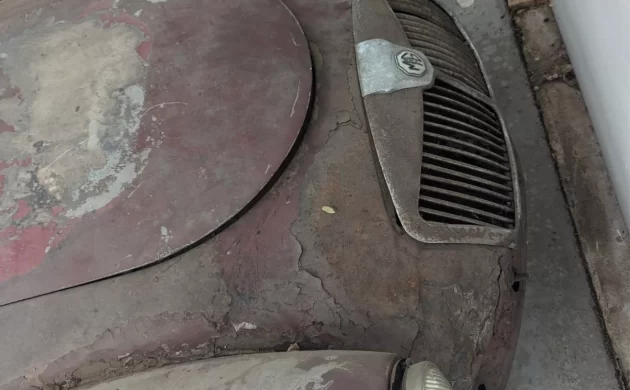 The interior is really rough. That said, at least the seat frames are still there and can probably be used as the basis for building new seats. There appear to be no vacancies in the instrument panel; all of the switch gear and instruments are present, but their functionality is unknown. I’d run with the assumption that this MGA has been sitting a long-long time in top-down mode – never beneficial for the interior. The folding top is in place, but the seller states that he’s uncertain of its condition but believes the frame is OK.