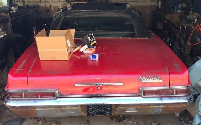 The interior appears to be in fair shape, mostly just dirty. The image is not particularly revealing but is obviously revealing enough to note that the aforementioned standard SS bucket seats are not present. From what can be seen, the front seat does not appear to be ripped – Chevrolet’s vinyl selections in the ’60s were pretty tough stuff. There is some dash rust starting, just below the instrument panel, so that will need attention. Unfortunately, as is often the case, the original radio has been replaced with a non-OEM unit. Fortunately, it looks like a non-DIN style radio in place so the opening probably has not been cut and can be reoccupied by an original unit.