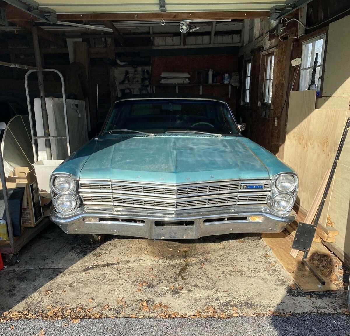 their ’67 LTD in our garage.It was a gorgeous gold/bronze,with