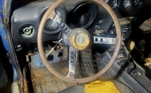 This interior is rough and shows wear, fading and many broken items. The carpet was removed to show the floorboards which show floorboards. The seller needs to add videos and more pictures. The car looks pretty crusty and will require a personal inspection to see the undercarriage. I remember looking at a Datsun 240Z when I was in college. It was white with a black interior. When the seller started it up, it sprung a gas leak with the hood up that look like a geyser!. I figured on my limited budget that this was not the car for me at the time. However, I have always admired the looks and design on the Z car. The body is said to be very straight by the seller with all the glass intact.