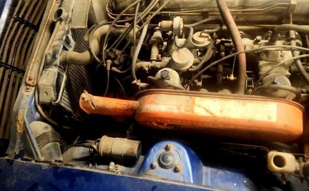 The engine in this Datsun 240Z is not running but is said to turn over freely. If this is the original engine, it is a 2.4 liter inline-6 cylinder called an L24. It was fed by twin Hitachi SU-type carburetors that produced 151 horsepower from the factory. The engine is backed by a manual four speed transmission. A three speed automatic transmission could be optioned but this was fairly rare. Torque output was rated at 146 lb ft from the factory. The Datsun 240Z was fitted with front disc brakes and rear drum brakes and had an estimated top speed of 125 mph. Car tests at the time showed the Datsun 240Z reached 0-60 mph in about 8 seconds.