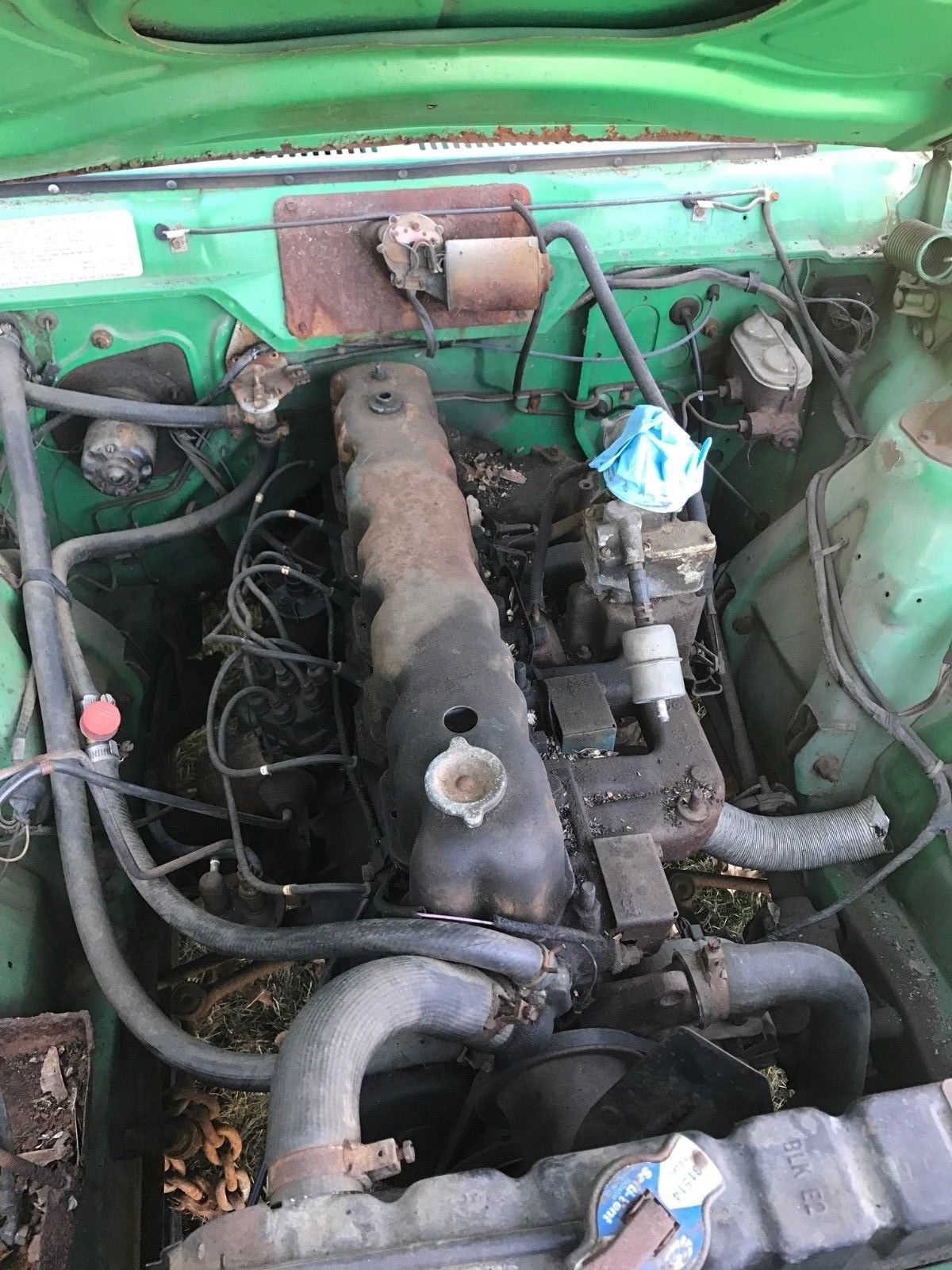 hmmmm, seller hasn’t attempted to start it? the battery box is empty so someone took the aged one out and set in one from their daily driver, removed the air cleaner and disconnected the fuel line in order to try to start it. When it wouldn’t go and they realized that it had no compression cause it was 153k miles? And who puts new wheels and tires on a non running car? Doesn’t pass the smell test IMHO