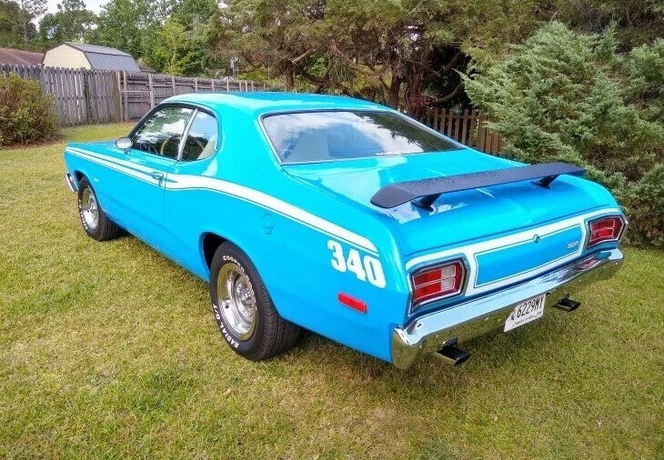 Besides the 340 engine, the car has a 727 TorqueFlite automatic, power steering and power brakes to help get the car around corners and as quickly as possible from 0 to 60. And you can do it in comfort with factory air conditioning that has been retrofitted to R134a specs. This beauty was one of 15,731 copies made in ‘73 before the 340 was replaced with the 360 motor, a change that was not popular with enthusiasts. Even though the compression ratio was dropped to 8.5:1 for 1972-73, the Duster 340 still had quite a lot of punch left in it. And makes the cars popular enough to command north of $30,000 today in great condition (according to NADA).