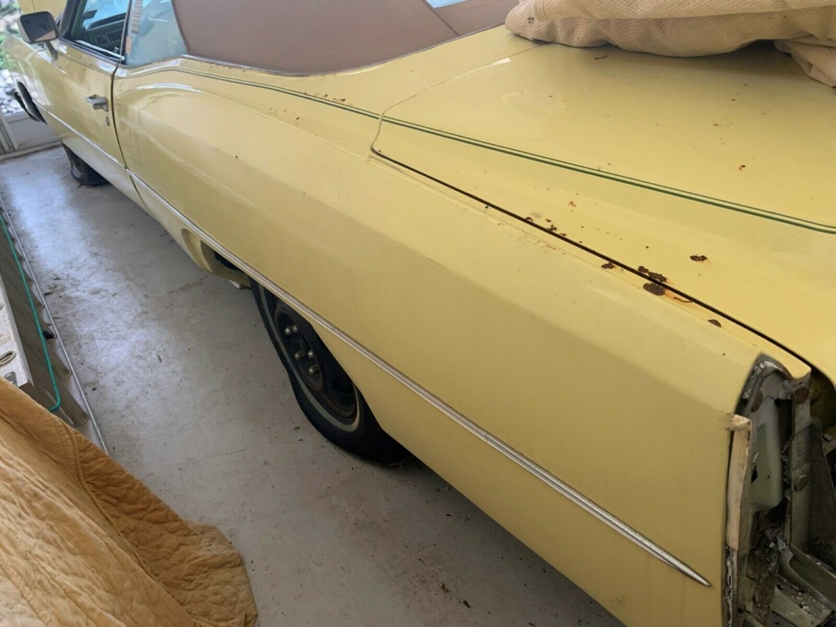 The only signs of rust are what you often see in captivity in a humid garage in Florida – surface rust. Along many of the surfaces that come into contact with other surfaces. The seller believes the car received a quality repaint sometime in the 1980s, so what’s here is at least 30-35 years old. The Caddy has not been up on a lift, so there is no representation that the chassis is clean. Much of the chrome has oxidized and a purist will want to replace those pieces. The fender skirt not visible in the photos in on top of the truck lid and the wheel covers are inside that trunk.
