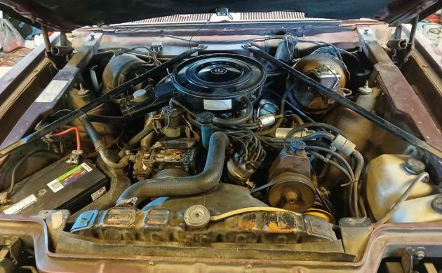 Drivetrains in the Barcelona were standard Matador, a base 258 and this optional 360-cubic-inch two-barrel V8. For 1978, it made 140 horsepower and 278 lb.-ft. of torque while breathing through a Motorcraft carburetor. This one has air conditioning, power brakes, and power steering, but given the car’s status as a dusty garage dweller, there’s little information about the status of the mechanical bits.