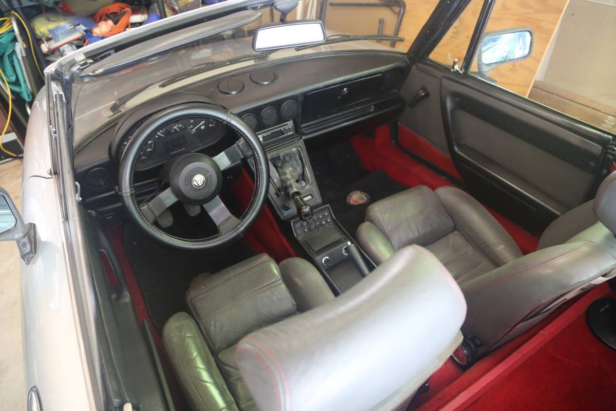 One of my favorite details about vintage Alfa Romeos is the company’s love of red carpeting. It went all the way to the trunk, toon, lining it wall-to-wall in deep crimson. The nicely bolstered bucket seats, three-spoke steering wheel, and upper-console mounted shifter are all staples of the Spider, and those pieces all look to be in good shape here with some typical creasing to the leather seats. The mileage is indicated as being just under 66,000, and the convertible top is said to be original to the car. Alfa-branded floormats still cover the carpet, and overall, the cabin looks quite tidy.
