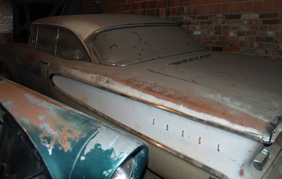 Though rough around the edges, the seller says this car is largely complete. There is some rust in the fenders and floor panels, but the car is captive inside the garage so it’s hard to tell even what color the car was when it was new. The chrome, which we understand is hard to find now, we’re told is in decent shape. The interior is going to need a lot of help as well, especially the upholstery. Some attempts may have been made to work on the Edsel as it comes with new aftermarket taillights. The seller is willing to transport the car for the buyer as he has access to a truck and trailer. Who’s looking for an Edsel project?