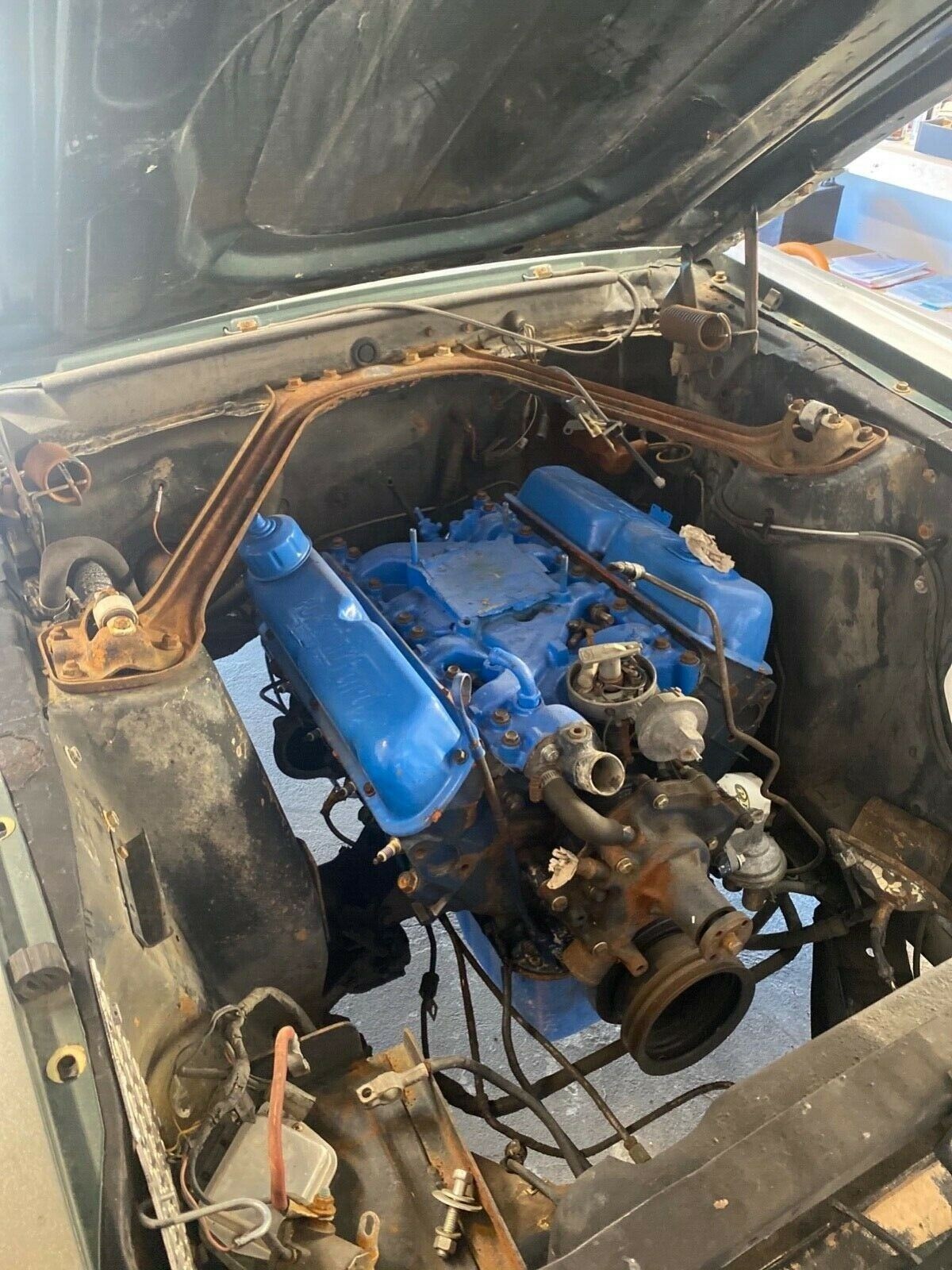 The most challenging work on this 1969 will be related to the body. The seller says it needs a “decent amount of rust repair” which may go further than that. Since the wheel openings and lower quarters have been chewed on, new rear quarters may be needed. The passenger side rear floor pan will need patching or replacing and there is a big hole in the floorboard seen from underneath (while may be the same spot). The driver’s side front fender has a gouge in it and the car’s color was changed at some point from lime green to dark green. We’re told all the parts are there to put to car back together, including the front bumper, grille and valance panel.