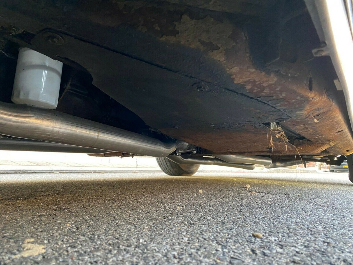 You can see the new exhaust and a little surface rust here on the chassis, and perhaps the remnants of a long-ago off-road excursion? Nothing I’m worried about.