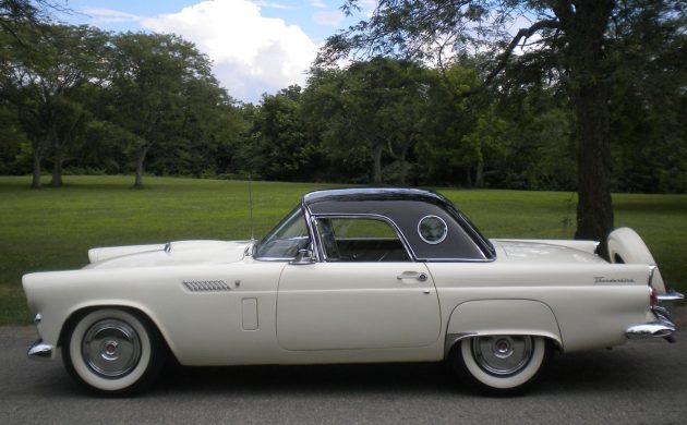 Nice writeup and a nice driver-quality ’56 T-Bird. Although you could order contrasting colors for the removable hardtop from the factory, I’ve never seen one in Raven Black on a Colonial White body. Most white ‘Birds had the matching white hardtop. Interesting.