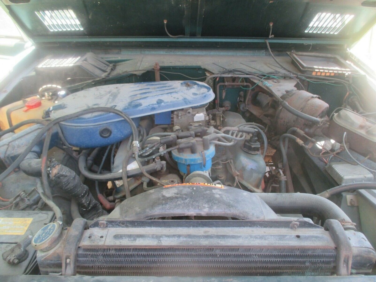 Moving to the interior, we can see that this Ford is like a time capsule inside. The loop pile carpet looks fantastic, as do the seats and dash. Looking closer, there are some minor discolorations, like on the door pulls, and the upper edge of the door card where your arm would rub. Also, It looks like the steering wheel has been wrapped, so that may be hiding a crack, or I suspect it was just the fad of the 1980s and steering wheel wraps. The driver seat has a minor split on the bolster. A CB radio is installed, and I believe there is a trailer brake unit installed under the dash.