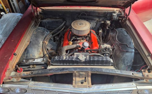 Under the hood is a V8 engine paired with a manual transmission, making this a stick-shift car. The seller notes that the motor runs, which is always a positive sign on a project in this price range. With rear-wheel drive and classic mid-1960s Chevrolet underpinnings, the foundation is there for a cruiser, mild build, or even a more serious performance project.
