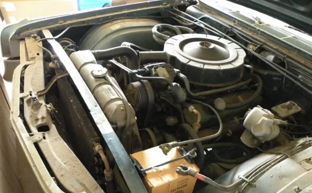 This Chrysler wears Royal Turquoise Metallic paint, which could be original (just a hunch). The body seems okay, and the limited photos don’t display any corrosion. The convertible has a black top, which may be okay, and the interior is mostly white with black accents (leather?). Bucket seats and a console make sense with the 4-speed shifter. The car is loaded with options, including factory air conditioning and power windows.