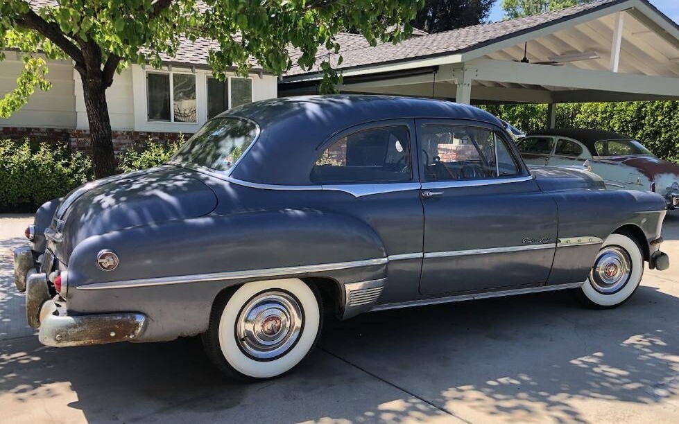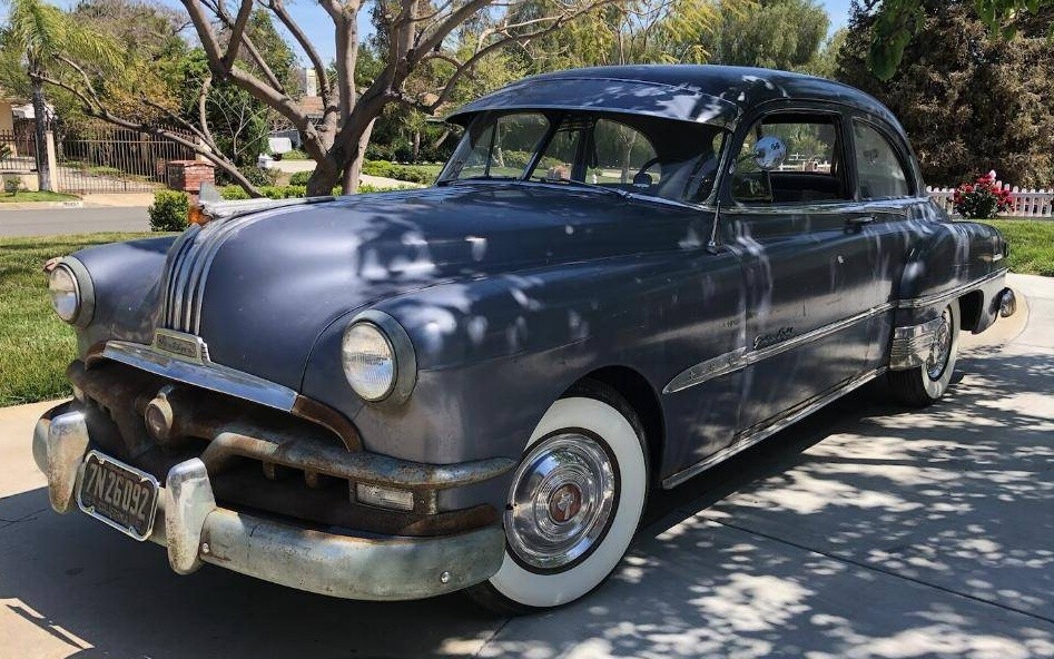 I inherited a 51 Pontiac just like this one, including the rusty bumpers and grill. It was my wife’s grand father’s and was a one owner car that was totally original and complete. It sat outside for many years before he died but had very little rust other than the bumpers and trim. None of the other family members wanted it so I took it to keep it out of a junk yard. I spent a day getting it running and drove it over a hundred miles home on hard bumpy tires. I didn’t do much with it except take out for a neighborhood drive occasionally. I sold it for $350 when I moved to my current house in 1985.