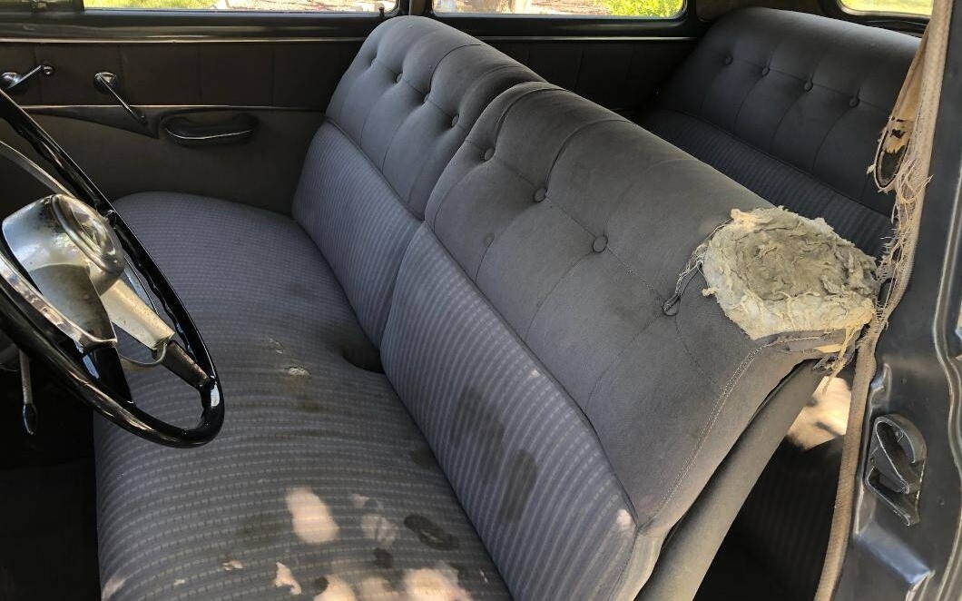 Things inside are stated as original, and I’m wondering if some sort of critter got in there at some point and gnawed on the seat. Other than that one area, both seats actually appear to be in fairly decent shape for their age, and hopefully structurally sound enough that some new upholstery on top will be all that’s needed. The dashboard seems to be well preserved, as does the steering wheel, but be forewarned that there is some rust stated to be present on the driver’s side floorboard.