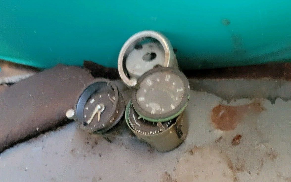 The interior is rough! But then it’s just the interior with the biggest concern being the soundness of the floors. That item is unknown as a carpet of some sort has been overlayed. The front seat has an ill-fitting cover, the door cards and windlace are shredded, the headliner is missing but these are the normally encountered items that befall an outside car. The clock and radio have been removed and there is a roll of flexible steel pipe hanger under the dash – no idea what that is supposed to do. It’s safe to say that the interior will need a complete makeover.