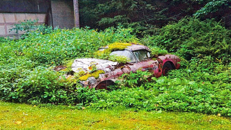 The recent post about a Porsche 911 showing off its algae-coated exterior may be the sign of a new trend: preserving vegetation on the exteriors of long-idled cars. This 1956 Corvette is seen where it was parked for years next to a garage in Pennsylvania. Supposedly, many attempts were made to buy the car, all of them unsuccessful until last August. It, and a slightly-less-decrepit ’54 model, were purchased and shown off at 2017 Corvettes at Carlisle event. Find the full story via the Hot Rod Network here on MSN. Thanks to Barn Finds reader Michael for the find.