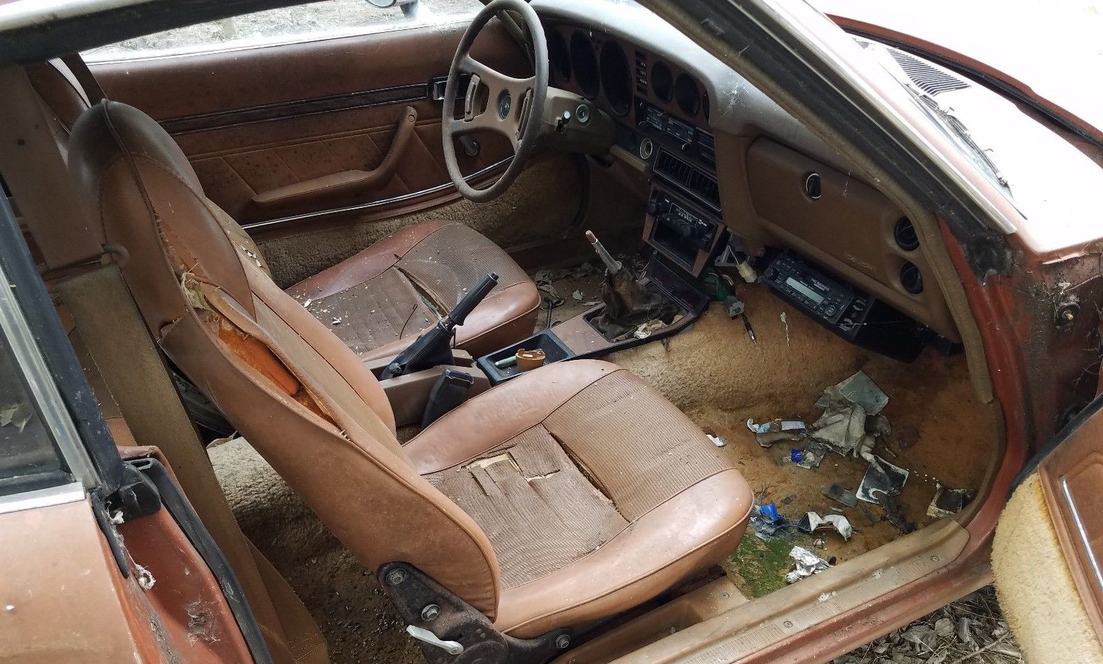Bit we’ve all been there, when you’re just done with a project and want to move on. The seller notes that Gary, the owner, was driving this car quite reliably before hanging it up for the cosmetic restoration that never happened. Now, it looks like there is moss growing on the carpets (in addition to on the body), the seats are tattered, and I’m guessing the dashboard is cracked assuming it’s spent some time parked in the unrelenting Texas sun.