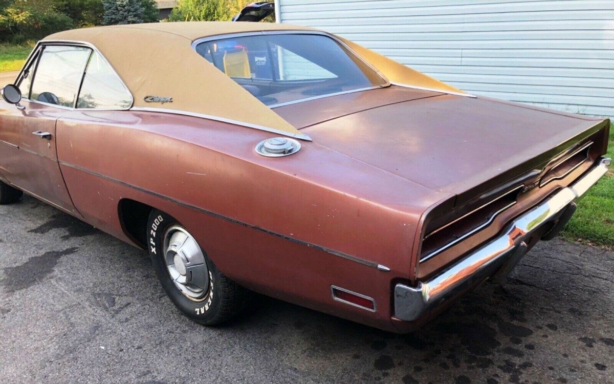 What looks like a shabby respray approximates the original FT6 Tan Poly paint. Wide tail lights grace the posterior of the ’69 and ’70 Charger, and that flip-up fuel filler comes straight out of the racing world, though ironically most racing Chargers ran a more traditional quarter-panel fuel door. I’d venture nearly any other wheels and tires that didn’t come from a Prius will look better on this sweetly styled Dodge. Thanks to Hemmings for some details.