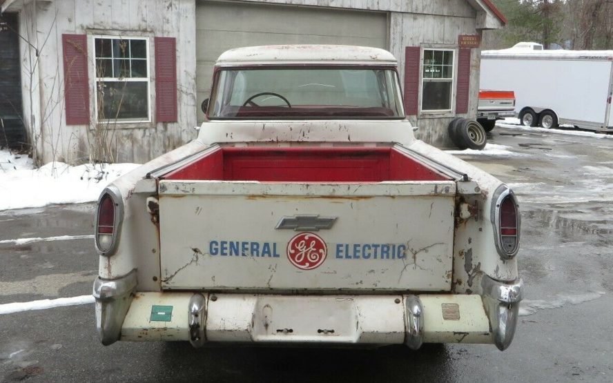 Old shop trucks have never gone out of style, largely because they’re hard to find with genuine graphics preserved in legible condition. This Cameo sports the classic GE logo on the tailgate and there’s no confusing how this truck spent its working life. Obviously, this tailgate needs to be preserved intact, with the huge bowtie emblem perhaps getting freshened up with some red paint inside. The Cameos left the factory with the two-tone look, all of them painted white with red in ’55. The painted bed had to have been a daring move by Chevy when the truck was introduced.