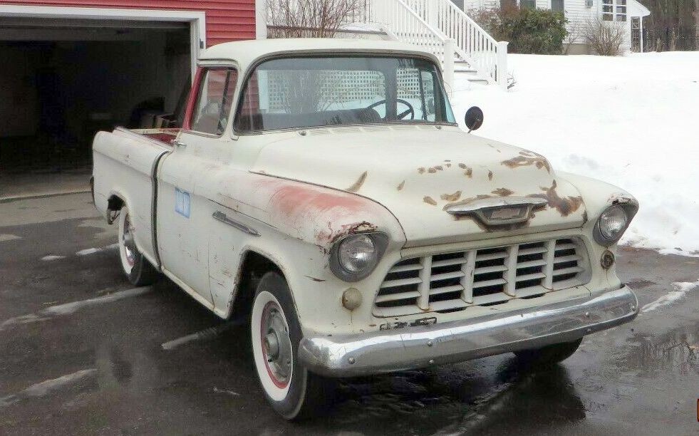 No, no, no, make it look nice, for cryin’ out loud. This was the classiest truck you could buy in ’55, it deserves much better than this. Looks like a piece of junk. They were so rare to begin with, a nice paint job and interior could add another figure to price. What did that yahoo in Nebraska pay for that one with a crunched roof?
