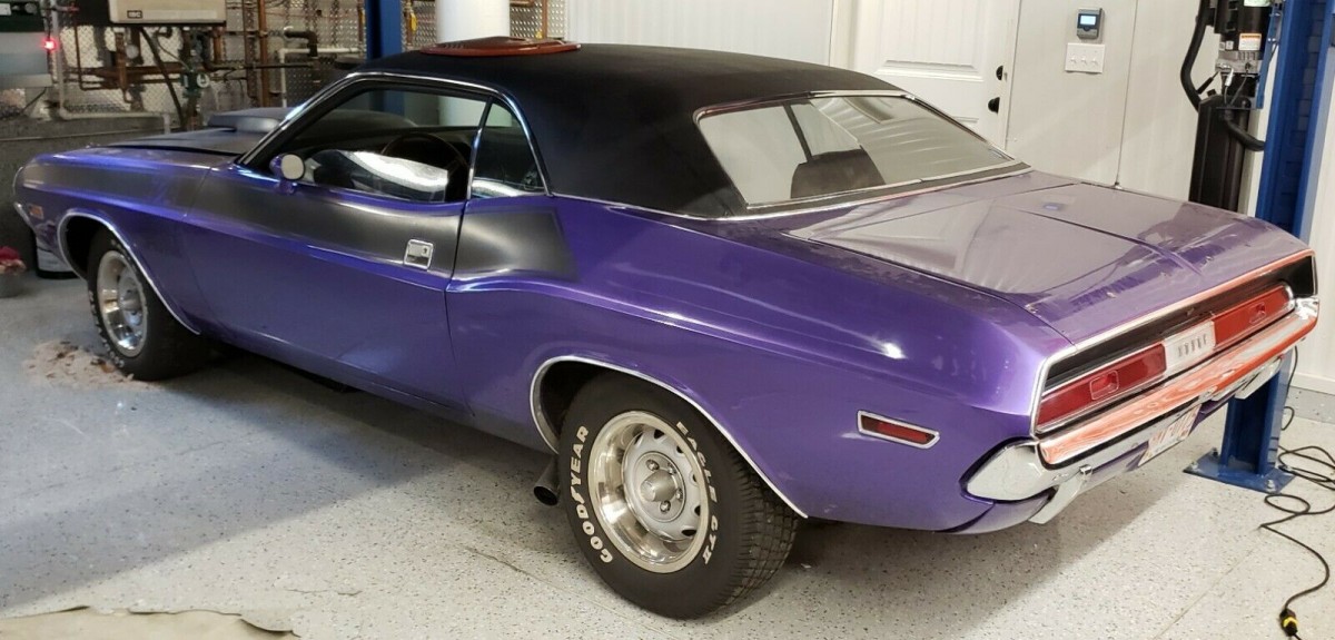 Apparently, the repaint was to a high standard, as it looks as though the car came that color from the factory. (IMO) If you’re buying the car as an investment, then return it to the original color; OTH, if you’re buying it for love of the car and because you missed the first chance around (I’d) leave it Plum Crazy. This appears to be a really good buy, and the bids will surely rise!