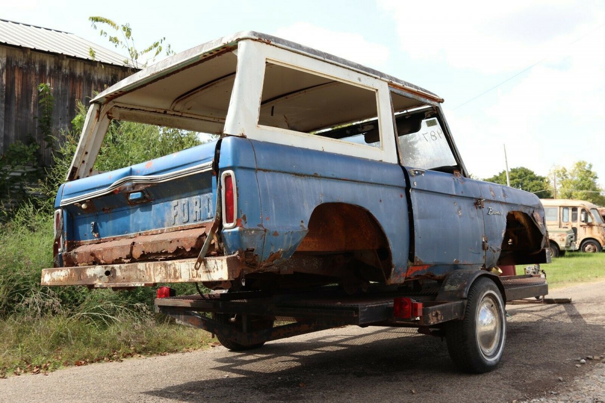 Before I sat down to write this article, I performed a search using the supplied VIN. I was able to determine that this Bronco rolled off the line in August of 1965, which was the first month of vehicle production. That makes it an extremely early example that will attract the attention of many enthusiasts. The owner confirms that the correct characteristics are present to verify that this is a Budd body, which is almost the Holy Grail of 1st Generation Broncos. That being said, it is also a body suffering from all of the rust issues that are typical with these classics. There is plenty of external rust in the lower extremities, extending into the front inner fenders and the floors. Someone has performed the common trick of cutting the wheel openings to accommodate larger wheels, and most of the glass is missing. However, the frame seems to carry nothing but a coating of surface corrosion, and the owner says that there is no evidence that it has ever been bent. Crucially, all of the tags are present, and with replacement steel readily available and affordable, it should be possible for the buyer to whip the bodyshell into shape.