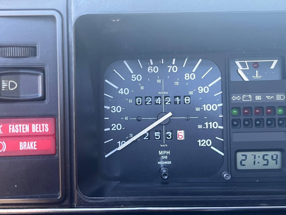 The other detail you notice is the dash plastics and switchgear. There’s no sun fading or other obvious cosmetic damage that typically takes place after years of top-down exposure. Plus, the LCD clock screen in the cluster isn’t bleeding out like so many of them tend to do by this point, and the cluster glass is clear as a bell. The needle on the speedometer still looks new, and the same goes for the digits. These are small details that tend to look quite tired once a car has racked up 100,000 or more miles, and/or been left outside for years at a time.