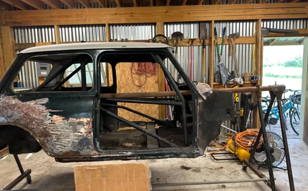 To the seller’s credit, he is prioritizing time with his three daughters over time spent in the garage working on this clearly long-term project, and for that, I salute him. I have three young children as well and it is never a difficult choice to choose between messing with a car or spending time with them; I rarely have time to drive the cars anyway. This Mini is from Canada, originally, and the seller notes it has the usual rust spots and other bodywork needs a vintage British car requires. He has stripped it down to bare metal and begun the bodywork, but now wishes to sell the whole car and all parts associated with its restoration.