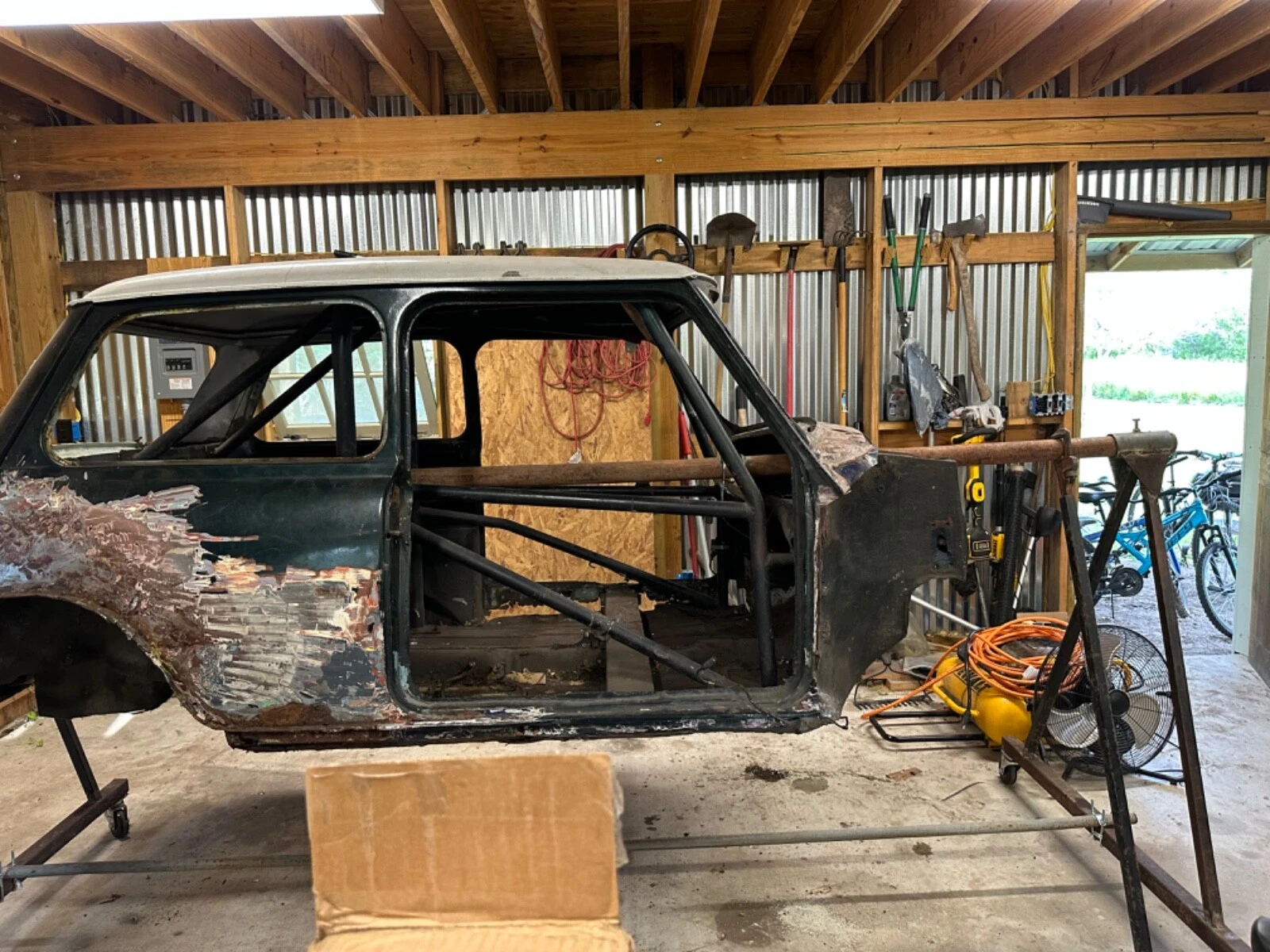 To the seller’s credit, he is prioritizing time with his three daughters over time spent in the garage working on this clearly long-term project, and for that, I salute him. I have three young children as well and it is never a difficult choice to choose between messing with a car or spending time with them; I rarely have time to drive the cars anyway. This Mini is from Canada, originally, and the seller notes it has the usual rust spots and other bodywork needs a vintage British car requires. He has stripped it down to bare metal and begun the bodywork, but now wishes to sell the whole car and all parts associated with its restoration.