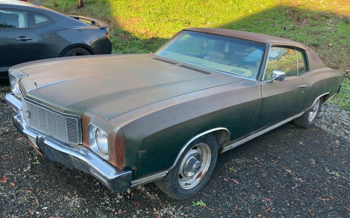 In the Spring of 1971, I went on a tour of Chevrolet’s Broening Highway (Baltimore) assembly plant. I was a car-obsessed teen and B.H. was one of several plants that assembled Chevelles, El Caminos, and Monte Carlos. As we walked along the assembly line with the tour director, I pointed to a Monte Carlo SS and called it out to a friend who was accompanying me. The tour director asked me what I was referencing and I said, “There goes a Monte Carlo SS”. He asked me why I thought that was an SS model, one he didn’t know was being assembled right under his own nose. I said, “Look at the rocker panel, see the SS454 badge”? It was an educating moment for him I guess. And now, half a century later, we’re going to look at another Monte Carlo SS454 in the form of this 1971 example. Our subject car (built at GM’s Van Nuys, CA plant) is located in Oakland, Oregon and is available, here on eBay for a starting bid of $8,500.