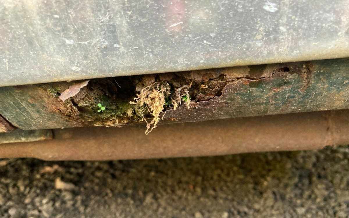Monte Carlos of this generation are built on GM’s A-Body platform, specifically a 116″ wheelbase Chevelle four-door/station wagon/El Camino chassis. The frame, somewhere in front of the firewall, however, was stretched another four inches to provide support for the Monte’s runway length hood. In some circles, the platform was referred to as the “A-Special” due to the extra stretch. Nevertheless, Monte Carlos rust just like their lesser siblings but the seller states, “The dark green paint (Antique Green) is the factory original. The body is super straight with minimal rust holes. The only rust found is in the bottoms of front fenders, would be an easy fix. There was some rust around the back glass that was already professionally replaced and looks great“. That pretty well sums it up though there is plenty of visible surface rust too and hopefully it hasn’t reached an invasive state.