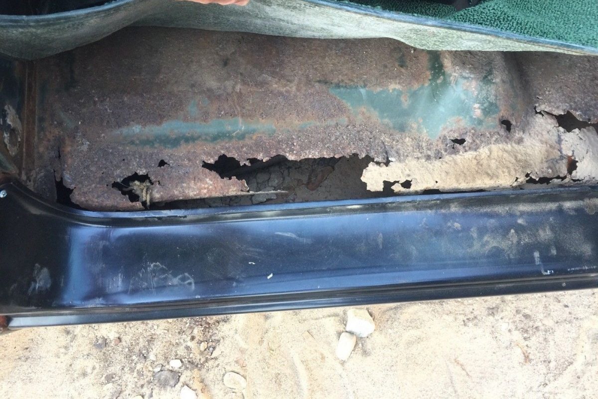 And now for the bad news: There’s an extensive amount of rust you’ll have to deal with. Unfortunately, this is one of the only pictures showing the rust damage, but the seller clearly states that you’ll have to be able to do some major welding. The ad says that there is rust in the front floor box, bracing, and inner and outer rocker. So, there’s a lot of work here.