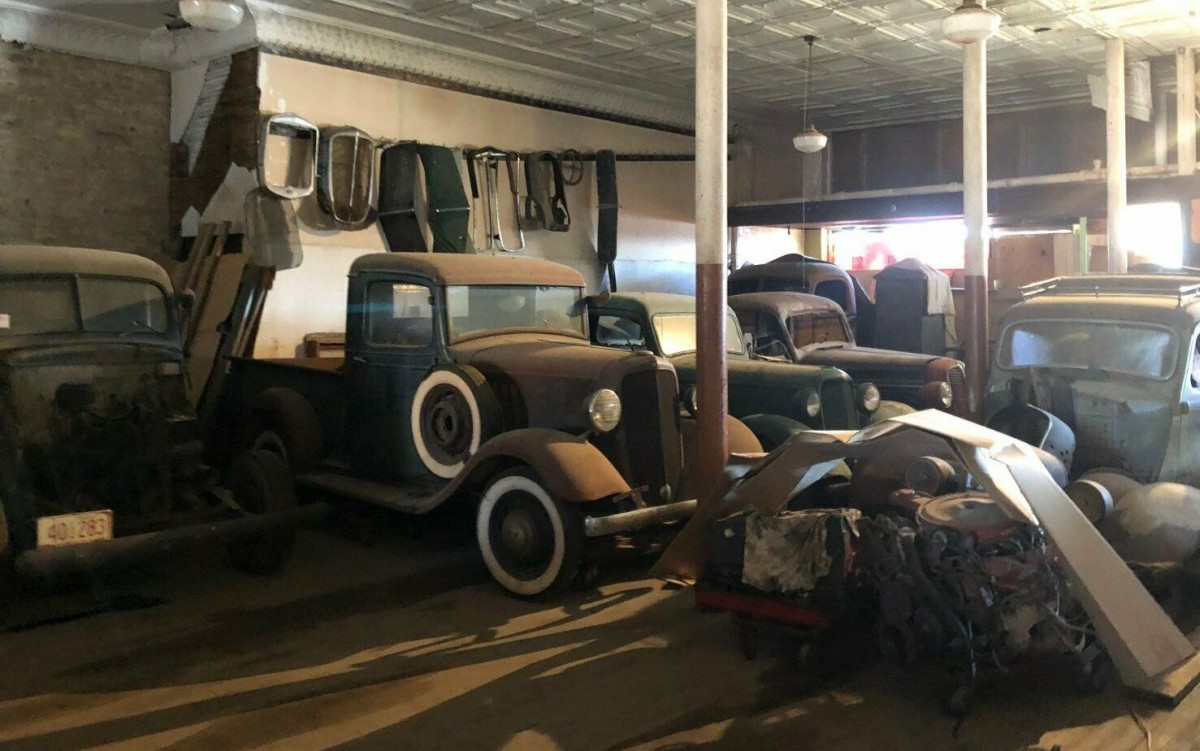 Cool old truck and a cool old building, the ceiling could be worth a fortune. And, I think I see the ghost, pic 6 in the ad, waving out of the window in the rig on the far right.