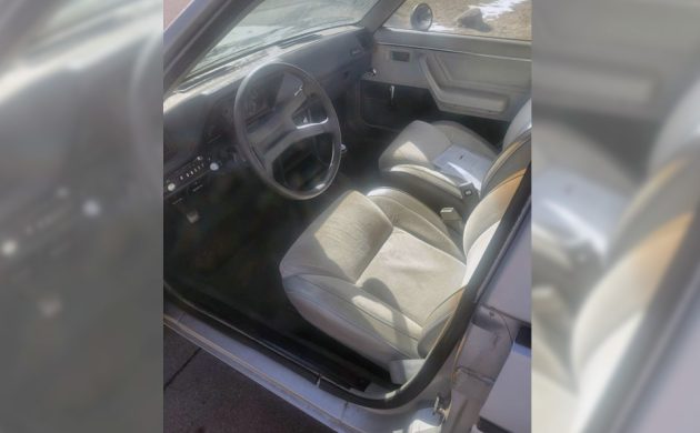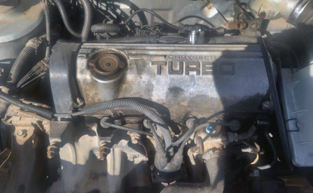 This is the only interior photo, but it looks great from what I can see. I don’t see any surface rust on the sills or anywhere else, and those “silver” cloth seats appear in nice condition, but it’s hard to tell from one vertical photo that’s a bit contrasty. The five-speed manual is nice, and from what the seller reports, it’s from a GLH (goes like hell) turbo car, which is where the engine also comes from.