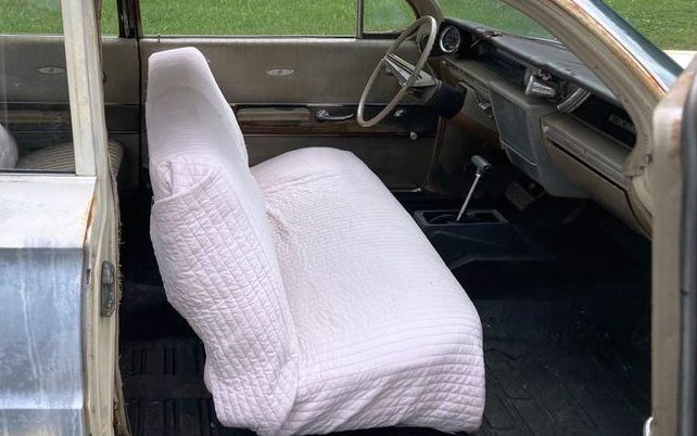 A lifetime’s spills and makeout sessions politely and thankfully hide beneath the shroud of a dollar store blanket. Some questions are better left unanswered. Joking aside, the interior appears to match the car’s original paint color, one that I would respray in a heartbeat as it’s even more invisible than the current off-white. Today, folks might suspect any ’60s coupe of possibly having a powerful engine, but the new-meets-old idea brings fresh appeal to an otherwise ho-hum post car. I love it! Do you like this blend of Clark Kent looks and Superman turbo power?