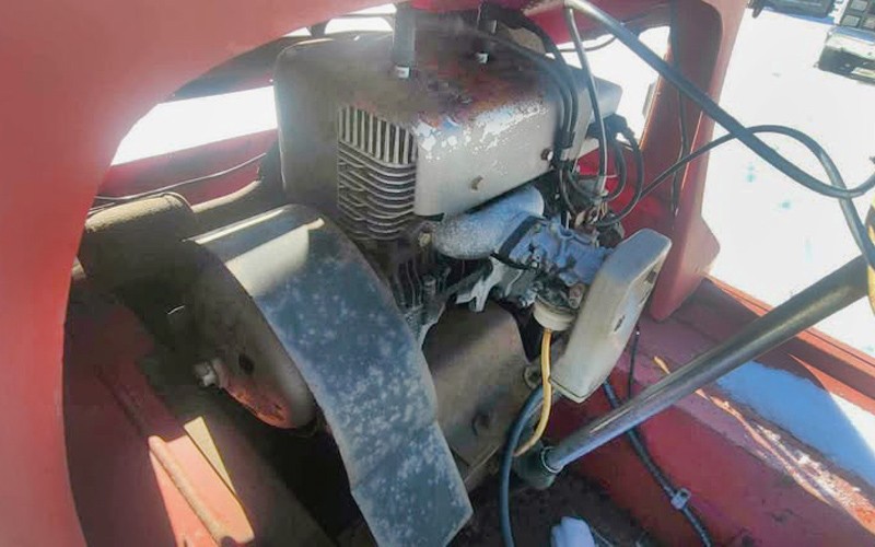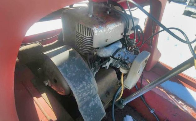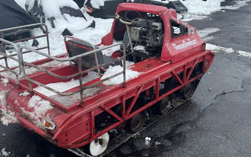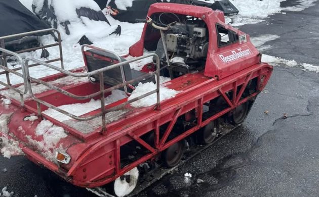 I wish we had better photos, and more of them showing the controls and other details. The engine appears to be a Canadian Curtiss Wright (CCW), which would have been available for the first time in 1971. It had 30 horsepower and was $100 more than the 22.5-hp Sachs engine. It’s a two-cylinder, and this one isn’t currently running. This rig should have a CVT-type transmission, as snowmobiles would have had. Have any of you heard of this unusual tracked vehicle?