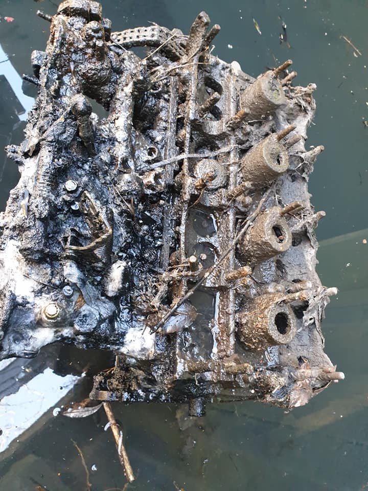 Would like to know about the lake. Way back, I knew a company (will not name) that would use the lake behind their building and dump all kinds of stuff (Hi-Po) items so they would not have to pay someone to haul away. Some employees would throw items that they or someone they knew, needed (stole) and later would jump in the lake and retrieve them later. Sometimes they couldn’t find what they threw in. In this case with the “BMW” short block (all the goodies are gone) minus the induction, heads and other attached items, I believe it was a dead block and someone added these items missing to another. Also a good way to rid numbers. There may be more Goodies under them waters!!!!