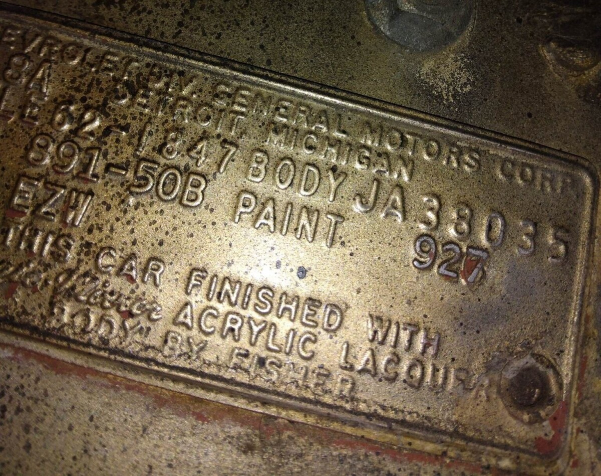Estimates are that between 300 and 350 copies of the Anniversary Gold Impala Sport Coupe were assembled in 1962. A few convertibles may have slipped through along with a few Super Sports (which was not a requirement). And we’ve seen where the celebration continued into 1963 with a few of those Impalas getting this special treatment, too. The cowl tag on the seller’s car confirms the rare 927 gold paint and the 891 interior trim which consisted of yellow/gold (beige?) bucket seats.